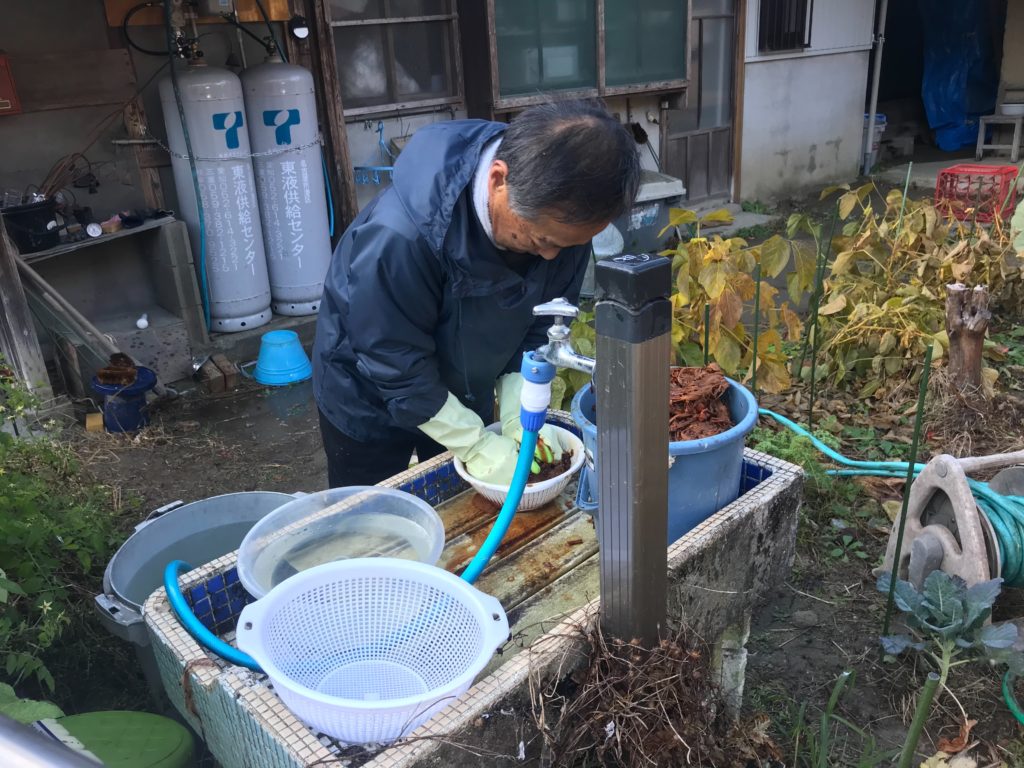 煮熟が済んだものをアク抜きする作業から始まりました。